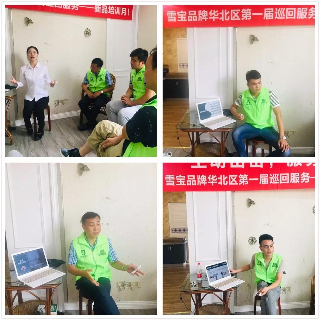 2019年9月18日、9月12日,“主動出擊 服務(wù)至上”雪寶品牌2019華北區(qū)第一屆巡回服務(wù)——新品培訓(xùn)月活動來到江蘇揚州和江蘇姜堰。本次培訓(xùn)活動由雪寶國際集團華北營銷中心聯(lián)合雪寶國際集團培訓(xùn)策劃部攜手當(dāng)?shù)匮⿲毱放茖Yu店共同開展,幫助經(jīng)銷商打造高效精英團隊以及高效管理店面終端運營,為雪寶品牌在各個區(qū)域市場中大放光彩賦能添動力。