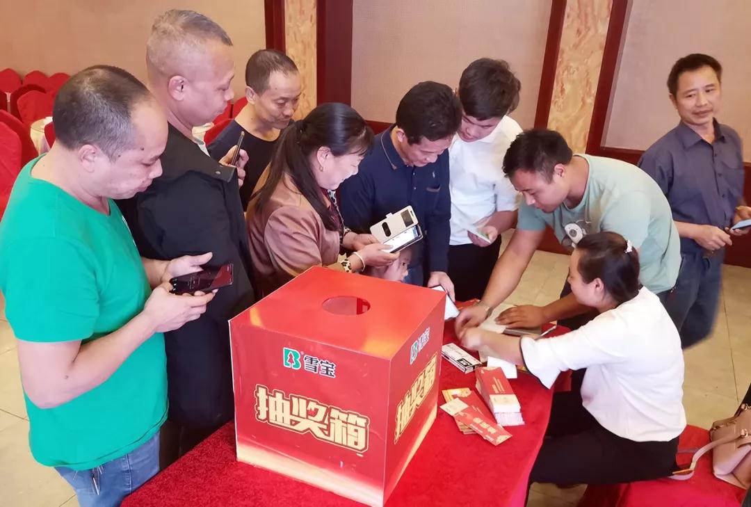 抽獎環(huán)節(jié),所有訂貨客戶均獲得不同的實物獎勵,雪寶品牌懷化地區(qū)周總活動現(xiàn)場更是拿出現(xiàn)金大獎進行加持,將答謝盛會推向高潮。