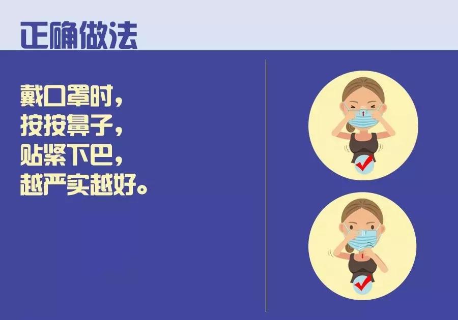 正確做法是,戴口罩時多做兩步:按按鼻子,貼緊下巴,越嚴實越好。