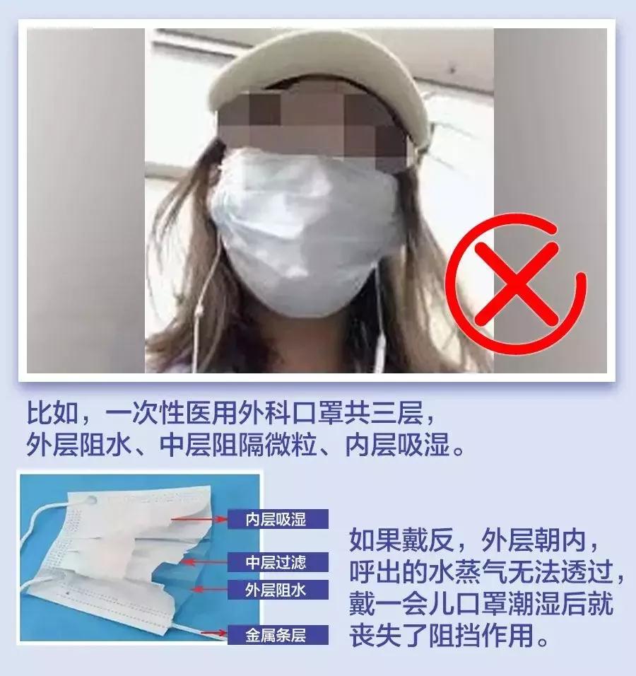 人呼出來的氣體比較潮濕,而內層與口鼻接觸,正好能吸濕保持口罩干燥,能阻擋病原體。如果戴反,外層朝內,呼出的水蒸氣無法透過,戴一會兒就濕了,口罩潮濕就喪失了阻擋作用。