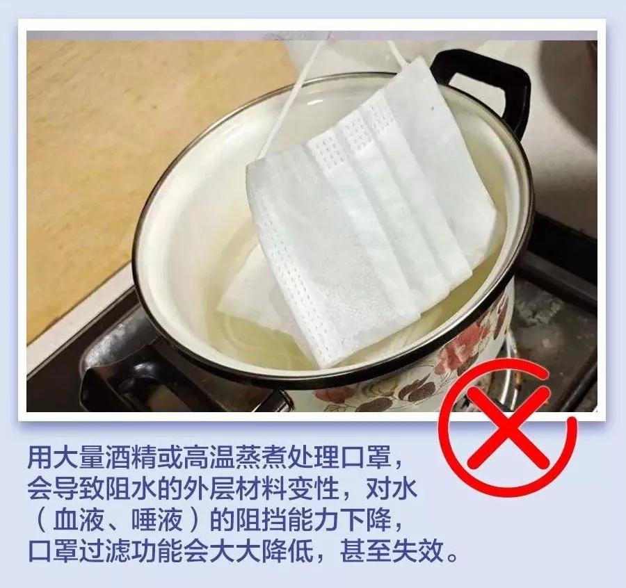 口罩外層也有類似的阻水效果,如果用大量酒精或高溫蒸煮處理口罩,會導致外層材料變性,對水(血液、唾液)的阻擋能力下降,口罩的過濾功能會大大降低,甚至失效。其實,只要不是去過人員密集的公共場所(如醫(yī)院),可以循環(huán)利用的口罩不必消毒。