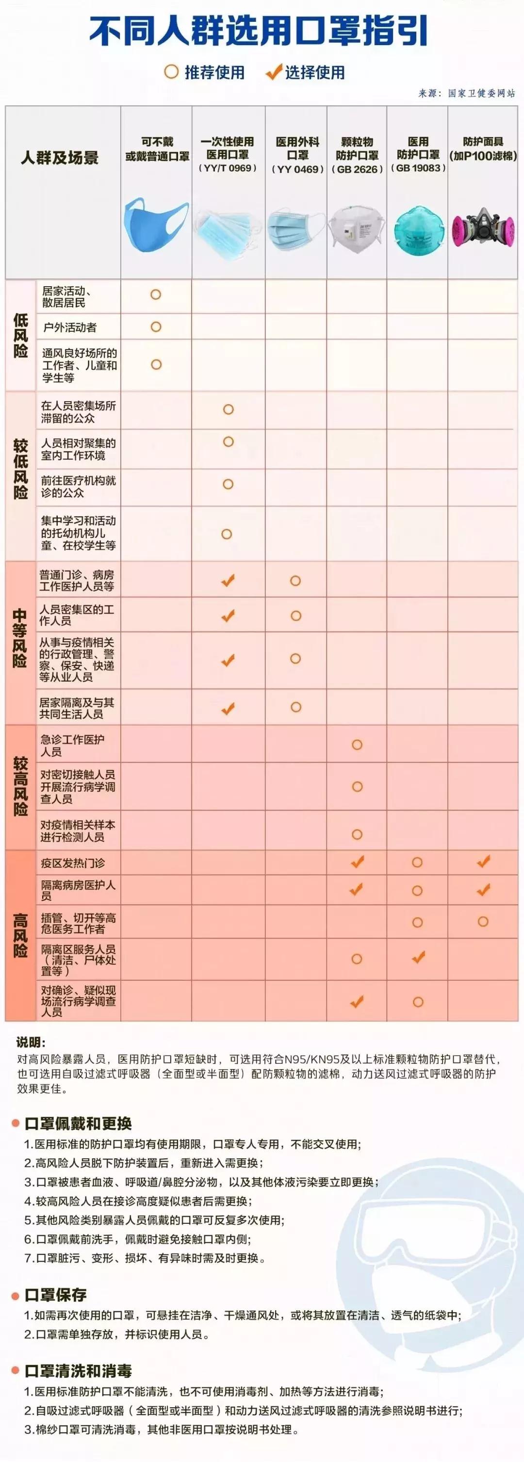 可能很多人會問,我怎么判斷感染風險是高還是低?別急,就在2月5日國家衛(wèi)健委等權威機構聯(lián)合發(fā)布了《口罩選擇與使用技術指引》,看看下面這張圖,就知道什么時候該戴,什么時候可以不戴了。畢竟口罩珍貴,且用且珍惜。