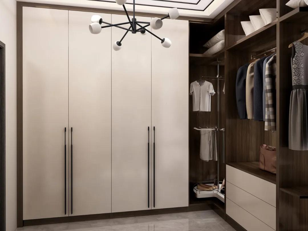 空間布局:一般來說,衣帽間的常規(guī)尺寸是在4㎡以上,獨立式衣帽間對住宅面積的要求更高。因為人需要有轉身換衣的空間,如果面積太小的話,會讓您產生一種壓抑的感覺。