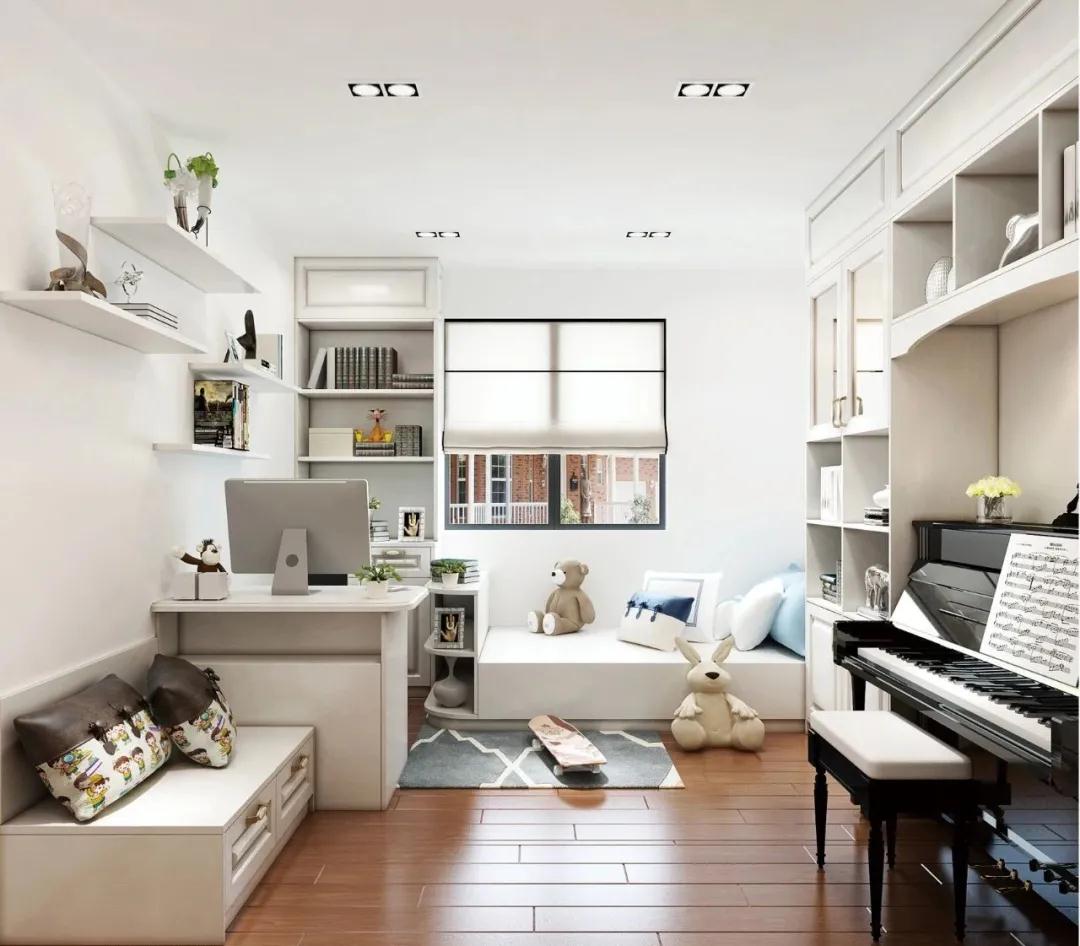其次,飄窗和書桌連在一起,這種設計節(jié)省了空間,更能合理的利用房間的寬度,滿足孩子的學習需求且陽光充足。
