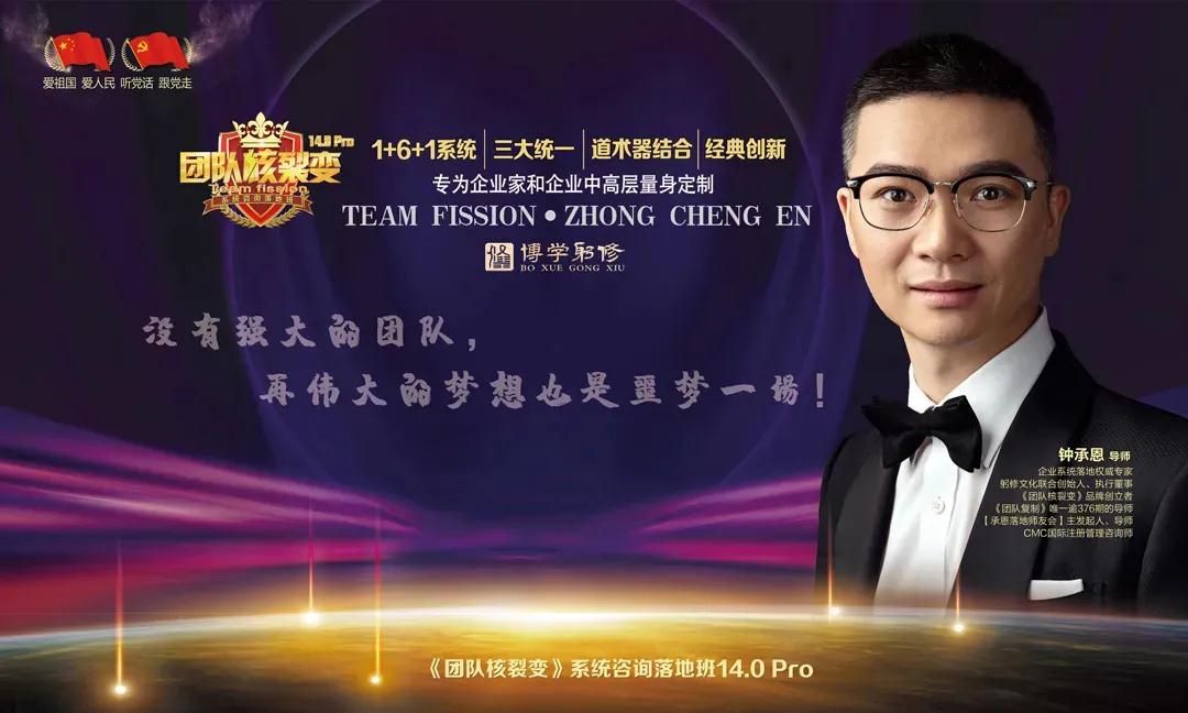 鐘承恩導師躬修文化聯(lián)合創(chuàng)始人、執(zhí)行董事、躬行書院聯(lián)合創(chuàng)始人、副院長、《團隊核裂變》品牌創(chuàng)立者、承恩落地師友會主發(fā)起人、導師、 CMC國際注冊管理咨詢師、SHSK管理系統(tǒng)締造者 優(yōu)秀的天使投資人、公益慈善推動者、多家企業(yè)獨立董事、特聘顧問。核心課程:《團隊核裂變》系統(tǒng)咨詢落地班14.0。他擅用“道、術、器”相結(jié)合的方法,采用“剝洋蔥”的層層解析的方法,在被管理中感悟管理,在團隊建設中領悟團隊,在讓學員在快樂成長與改變!十余年時間推動數(shù)萬企業(yè)成長發(fā)展,提升企業(yè)核心競爭力。