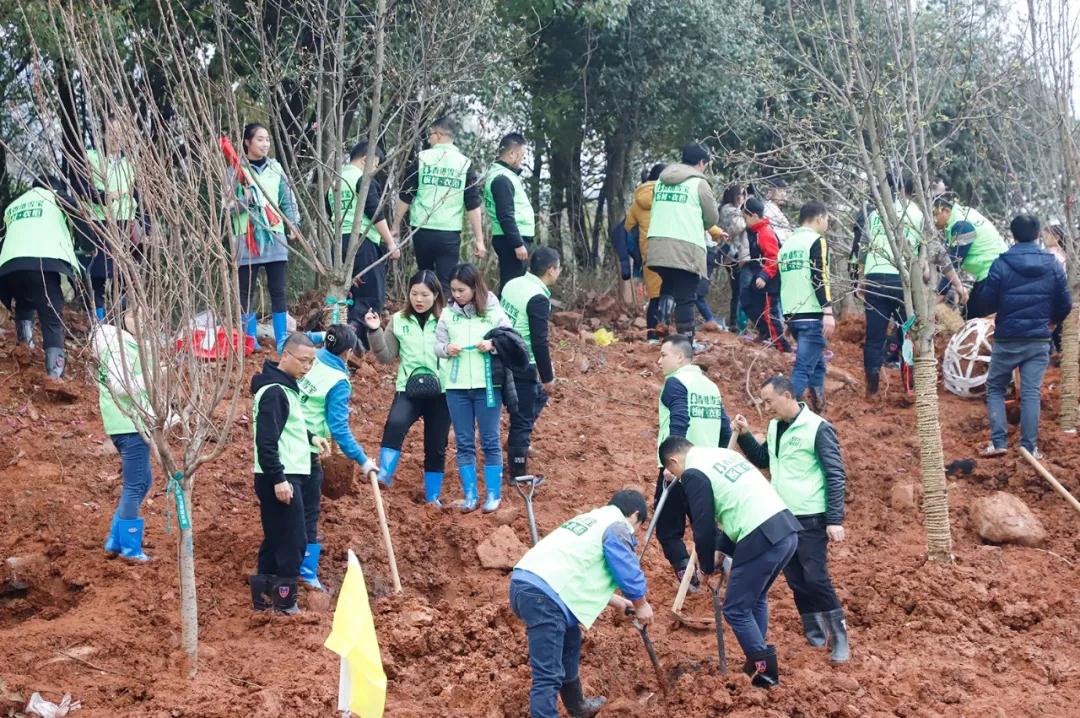 扶苗、培土、扶正、踩實……在滿是黃泥的植樹區(qū)域,大家手拿鐵鍬、鋤頭熱情投入到勞動中,細致認真地做好每一道工序,現(xiàn)場一片熱火朝天。一排排新栽樹苗在春日的朝氣中迎風挺立,為初春大地增添了一抹生機。