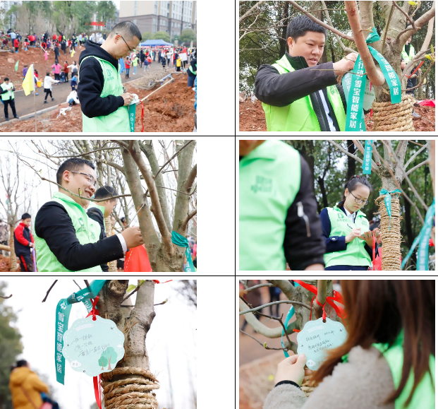 寫上心愿卡、系上綠絲帶,把心底最美好的祝愿寫在卡片上,寄托著對綠色環(huán)保生態(tài)的無限憧憬和對幸?鞓飞畹臒o限向往。