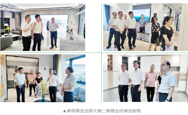 通過實地考察和互動交流,張司令員一行詳細了解了雪寶集團產(chǎn)業(yè)、品牌發(fā)展歷程、園區(qū)建設(shè)、全屋定制領(lǐng)域等方面的專業(yè)知識,對雪寶企業(yè)的快速穩(wěn)健發(fā)展給予了大力的肯定。張司令員非常關(guān)心雪寶,同時通過參觀雪寶優(yōu)裝定制館、生產(chǎn)車間,來賓們對雪寶產(chǎn)品體系及未來發(fā)展方向有了更大的期許。