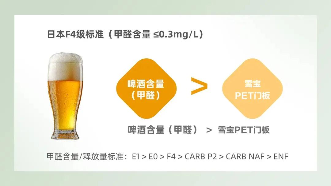 此外,雪寶PET門(mén)板環(huán)保等級(jí)基材達(dá)到F4星級(jí),PET飾面膜零甲醛釋放,真正健康安全的產(chǎn)品!