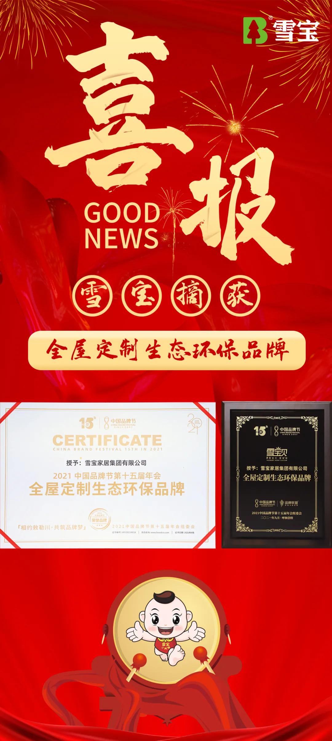 第15屆中國(guó)品牌節(jié)丨雪寶榮膺“全屋定制生態(tài)環(huán)保品牌”
