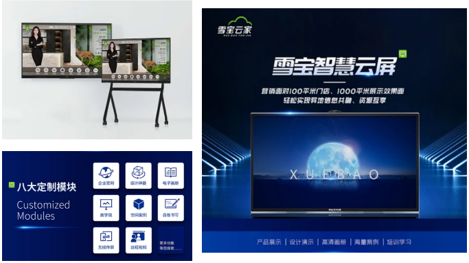 雪寶智慧云屏是一款集企業(yè)展示、設(shè)計(jì)下單、內(nèi)訓(xùn)學(xué)習(xí)、遠(yuǎn)程互通等多功能于一體的高清智能多媒體一體機(jī),有助于門店多維智能展示,打通總部與終端門店的點(diǎn)對(duì)點(diǎn)溝通,提升門店經(jīng)營效率。