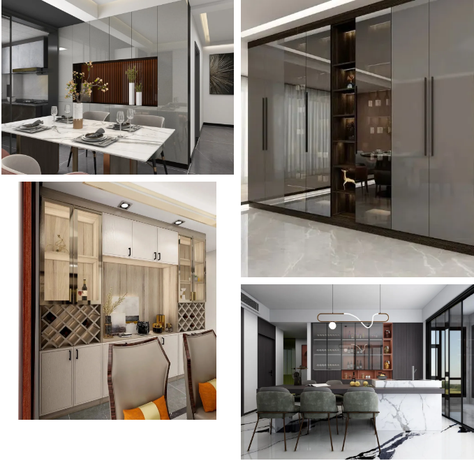 選用高級(jí)感滿滿的黑灰色系,搭配玻璃、金屬、高光門板元素的結(jié)合,讓餐邊柜凸顯輕奢格調(diào)!