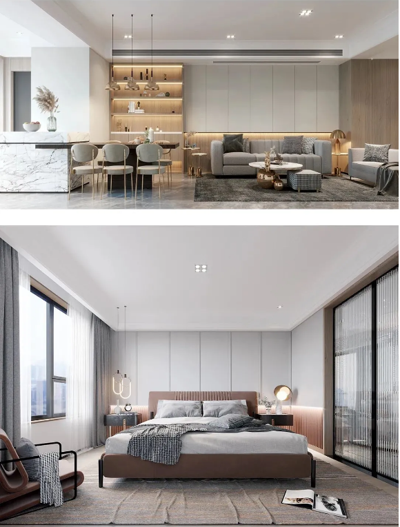 2、配色高級中性色——演繹一種“低調(diào)的奢華”,令空間質(zhì)感更為飽滿