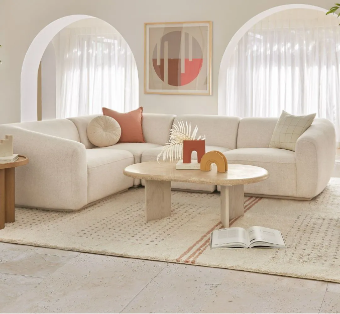 地毯是奶油色家居的利器,暖融融的毛絨地毯、自然風(fēng)的編織地墊,都能作為空間的點睛之筆。
