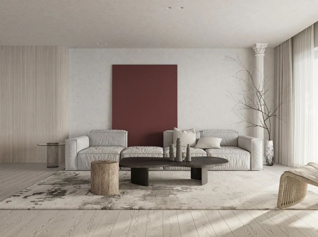色彩是最容易營造空間情緒的元素,基于侘寂風(fēng)自然、粗狂、古樸以及冷淡的特點(diǎn),多選擇米色、灰色、白色等自然色系和素色系;