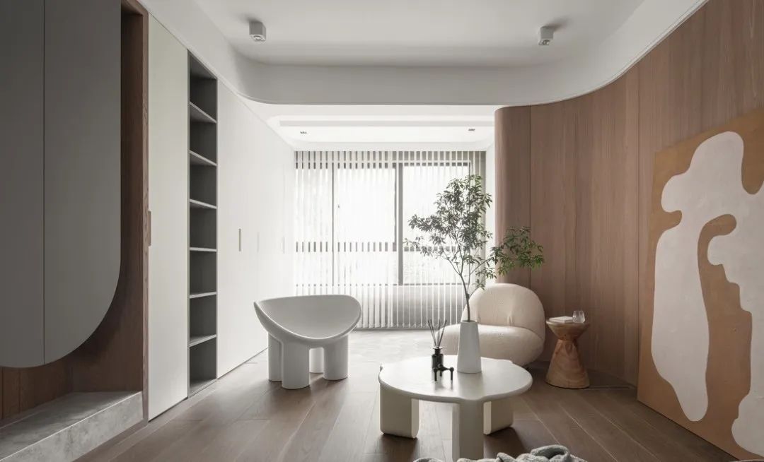 在空間布局上,侘寂的空靈之感就來源于空間的“空”,大面積的留白可以讓空間形態(tài)更好地表達(dá)出來。