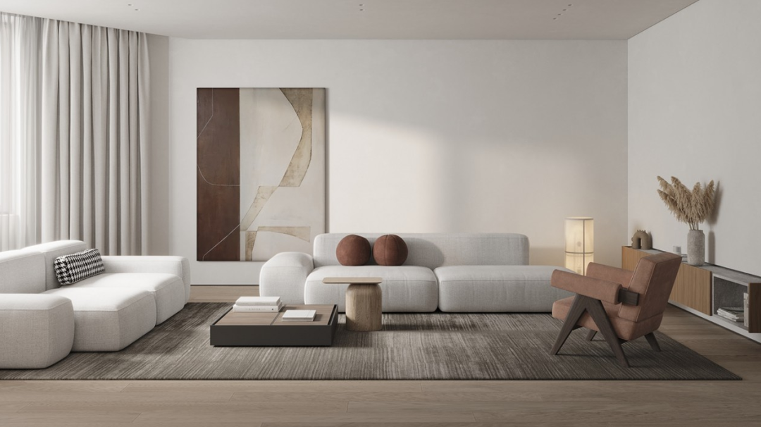 侘寂風(fēng)對軟裝的要求也比較高,多選擇線條感較強(qiáng)的家具,可勾勒出空間的立體感;