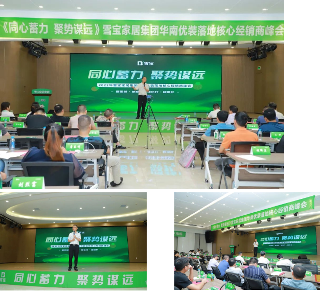 2022年6月17日,以“同心蓄力·聚勢(shì)謀遠(yuǎn)”為主題的2022雪寶華南優(yōu)裝落地核心經(jīng)銷(xiāo)商峰會(huì)在雪寶家居產(chǎn)業(yè)園7樓綜合大廳勝利召開(kāi)。