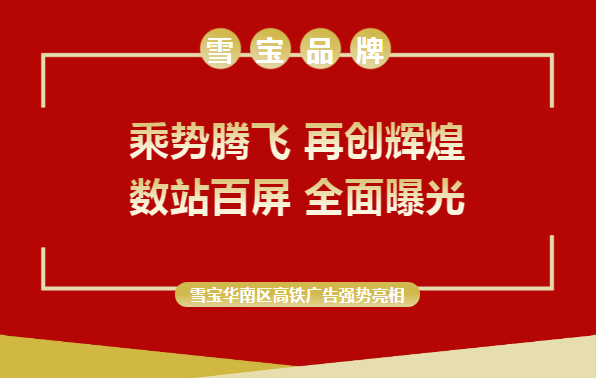 既是彰顯品牌形象,更是占領(lǐng)品牌實力制高點!雪寶品牌高鐵廣告在廣州南、福州、武漢、長沙、長沙南、南昌西、泉州、漳州、莆田、柳州、郴州、郴州西、衡陽東、株洲西、岳陽東、東安東、贛州西、上饒、鷹潭北、新余北、宜春、撫州、景德鎮(zhèn)北、吉安西、荊州等大型高鐵和鐵路樞紐站,通過站內(nèi)大量廣告屏,全面覆蓋各站點重要客流端口,讓乘客感受雪寶品牌的實力與魅力!