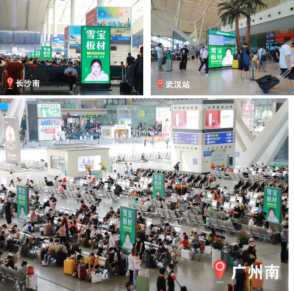 高鐵以“國家新名片”的國家高度為品牌傳播背書,為品牌形象帶來無以倫比的附加值,是品牌傳播的制高點,具有不可替代性,唯一性,排他性,傳播到達率 100%。雪寶板材以強勢之姿打出華南區(qū)域高鐵站群廣告沖擊波,代表行業(yè)品牌高端形象,讓品牌直接觸達目標人群,實現(xiàn)品牌強有力的曝光。