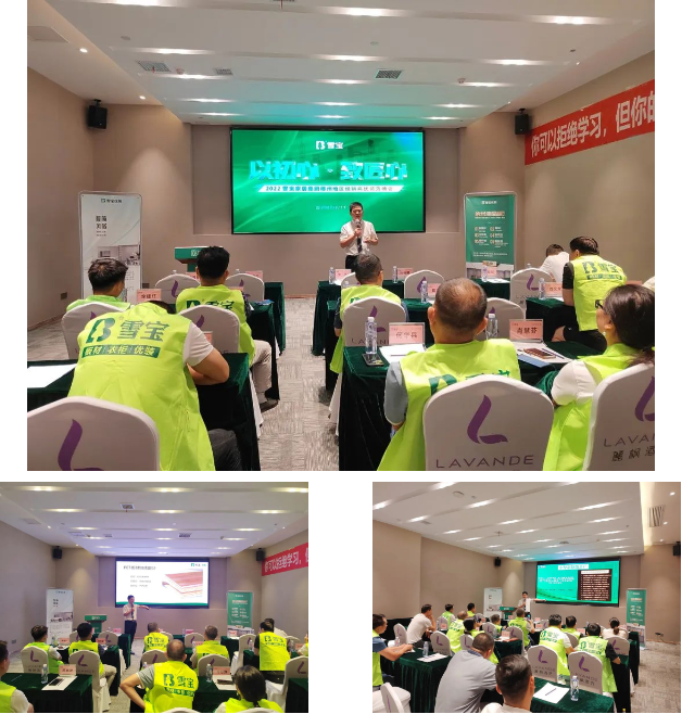 活動現(xiàn)場,雪寶華南營銷中心主動營銷部張經(jīng)理詳細(xì)講解雪寶優(yōu)裝落地運營及介紹雪寶PET產(chǎn)品。從現(xiàn)狀分析、品牌定制、生產(chǎn)加工、市場競品等方面深入探討以及明確落地優(yōu)裝的必然性,圍繞終端形象、門店運營、團隊管理、渠道開發(fā)、生產(chǎn)賦能、設(shè)計賦能、客戶維護等維度剖析雪寶優(yōu)裝的先進性和優(yōu)越性。通過實踐與發(fā)展證明,以及雪寶優(yōu)裝取得的顯著成效,充分說明我們從傳統(tǒng)板材營商轉(zhuǎn)型到雪寶優(yōu)裝這一條路是行得通的!