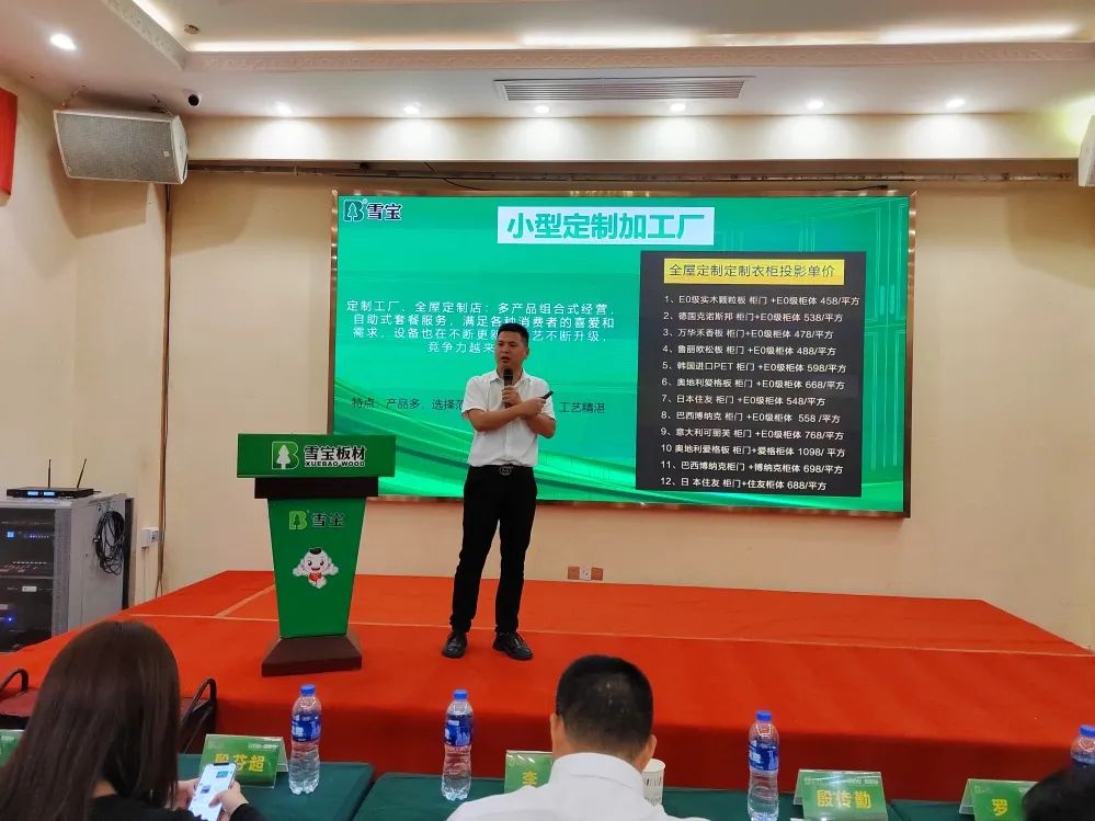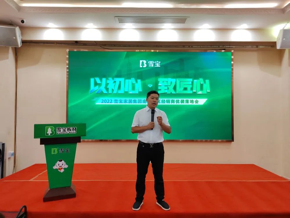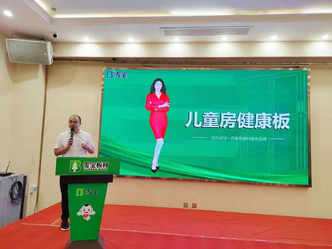 區(qū)域經(jīng)理羅興進(jìn)行雪寶品牌介紹,從品牌硬核實(shí)力、核心定位、獎(jiǎng)項(xiàng)榮譽(yù)、重大事件、行業(yè)口碑等方面深入闡述,突出強(qiáng)化“雪寶板材兒童房健康板”的獨(dú)特差異化核心優(yōu)勢(shì)和行業(yè)地位。