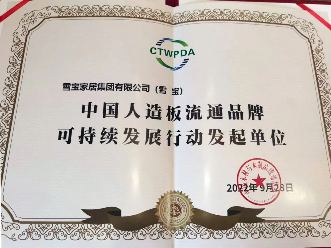 現(xiàn)場(chǎng),雪寶家居集團(tuán)與其他13家行業(yè)流通品牌企業(yè)被授予“中國(guó)人造板流通品牌可持續(xù)發(fā)展行動(dòng)發(fā)起單位”稱號(hào),共同肩負(fù)起行業(yè)綠色創(chuàng)新發(fā)展的標(biāo)桿企業(yè)責(zé)任。
