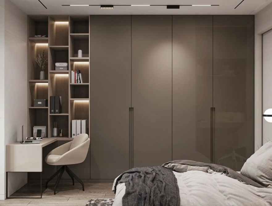 衣柜和書柜的組合設(shè)計(jì)是目前非常流行的一種組合方式,具備寧?kù)o特征的衣柜搭配上需要安靜的書柜。不浪費(fèi)空間,又層次漸進(jìn),保持了美感,又兼具了實(shí)用性,非常適合小戶型臥室使用。