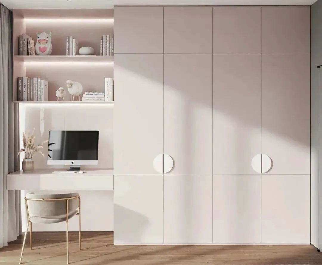 對(duì)于愛(ài)美的女士來(lái)說(shuō),除了想擁有一個(gè)大大的衣柜,可以放下想買衣服,當(dāng)然也希望有一個(gè)梳妝臺(tái)。衣柜連接梳妝臺(tái)則完美解決這個(gè)問(wèn)題,整體空間充分利用,梳妝、收納兩不誤。