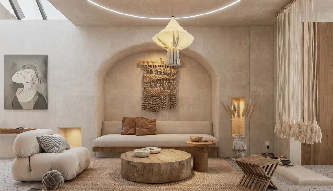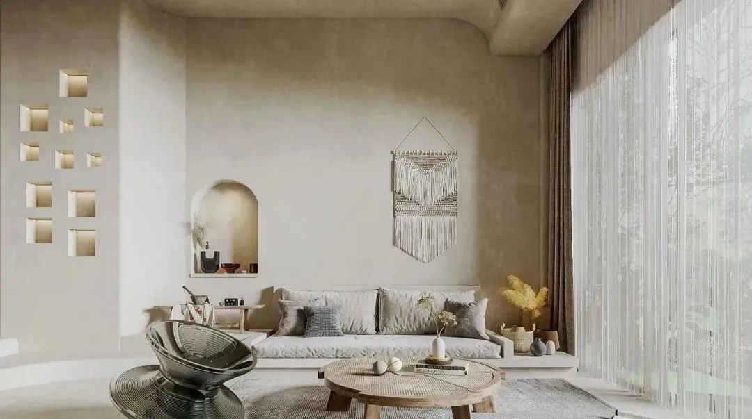 侘寂風會模擬自然材質(zhì),自然材質(zhì)既有一定的肌理感,又有獨特的紋理質(zhì)感,帶來返璞歸真的親切感。