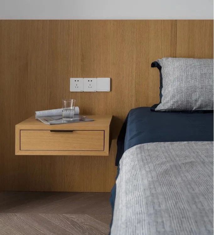如果你想床頭旁邊的位置更加簡(jiǎn)潔一點(diǎn),可以考慮采用隔板的形式,這種設(shè)計(jì)非常簡(jiǎn)潔。