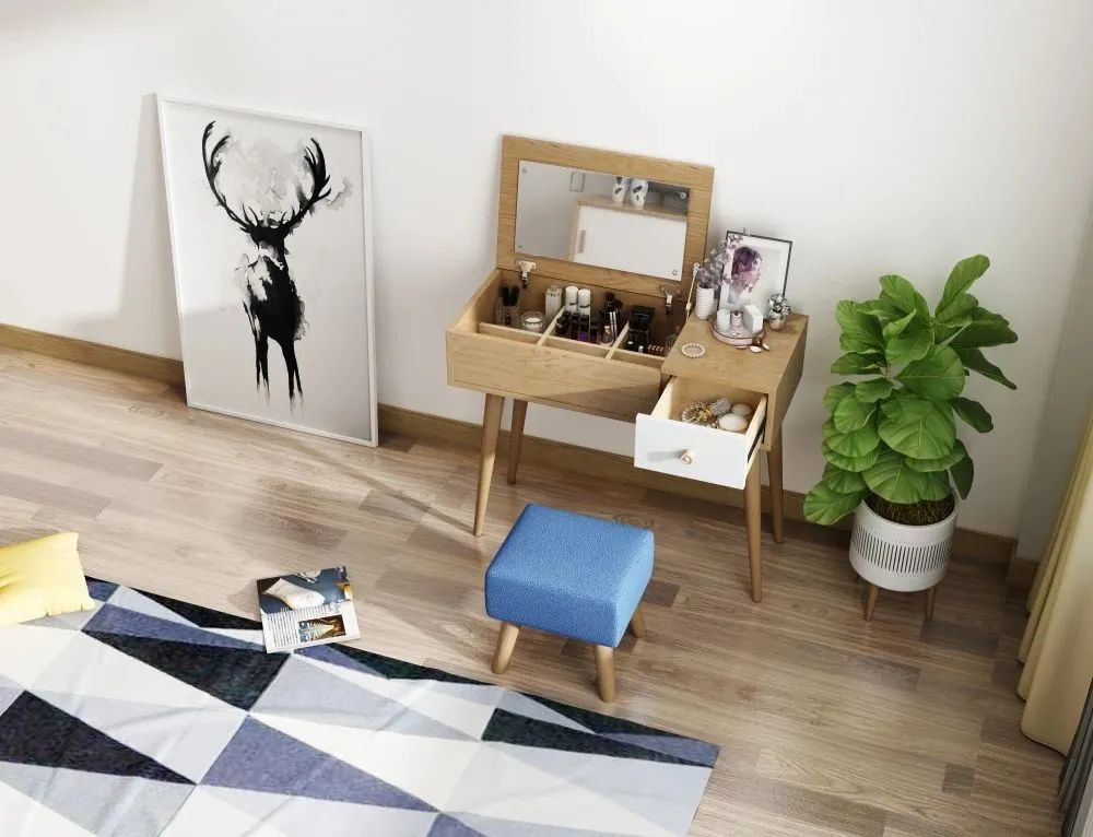 女為悅己者容的時(shí)代已經(jīng)過(guò)去了,現(xiàn)在女生化妝更多的是為了讓自己心情好。將梳妝臺(tái)與床頭柜合二為一,可謂是強(qiáng)強(qiáng)聯(lián)合。