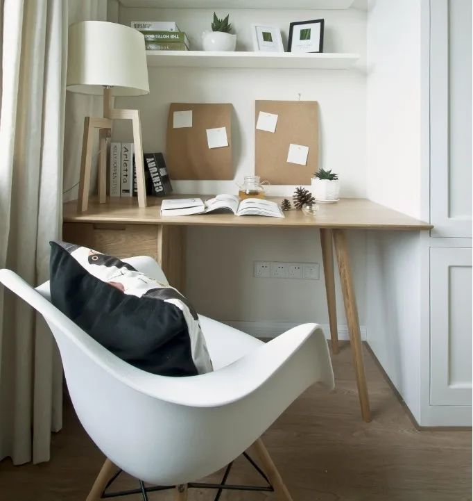 小戶型的房子,沒(méi)有獨(dú)立的書(shū)房,也可以在床頭的位置擺放一張書(shū)桌,這樣也是非常方便的,可以放床頭柜用,也可以放書(shū)桌來(lái)使用。