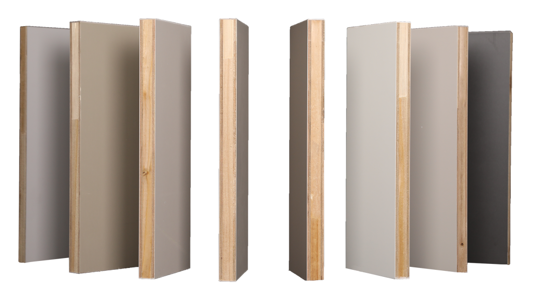 板芯精選規(guī)格統(tǒng)一的一級(jí)實(shí)木香杉方料齒接而成,首先貼第一層桉木養(yǎng)生一周并雙面精度砂光,再貼合第二層桉木再養(yǎng)生一周后,再一次進(jìn)行雙面等厚精度砂光處理,保證正誤差范圍20絲以內(nèi),然后做雙面橫拉科技木皮,確保板材平衡穩(wěn)定無變形,后貼楊木大皮保證板材表面平整光滑,最后貼雙面同色三聚氰胺紙后做PETG貼合。