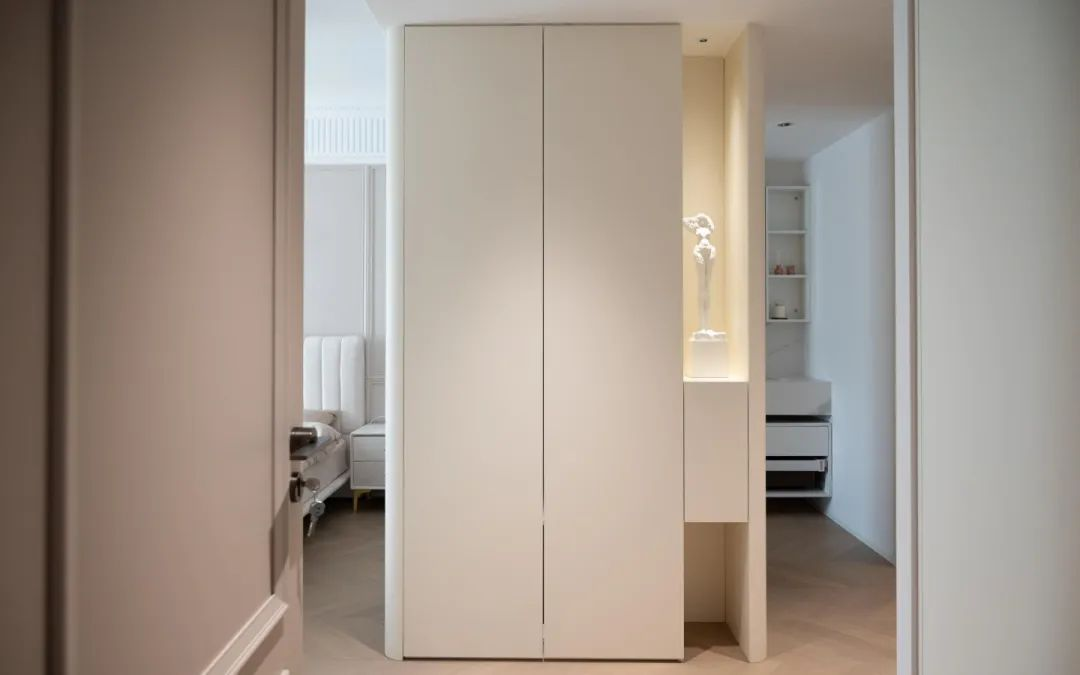 在我們的生活空間中,總會(huì)存在一些磕磕碰碰。不得不說(shuō),將衣柜轉(zhuǎn)角做成圓弧形狀就是“以柔克剛”的好范例。一般情況下,衣柜的轉(zhuǎn)角基本上都是90度直角,看上去雖然方正了,但總給人一種呆板的印象。