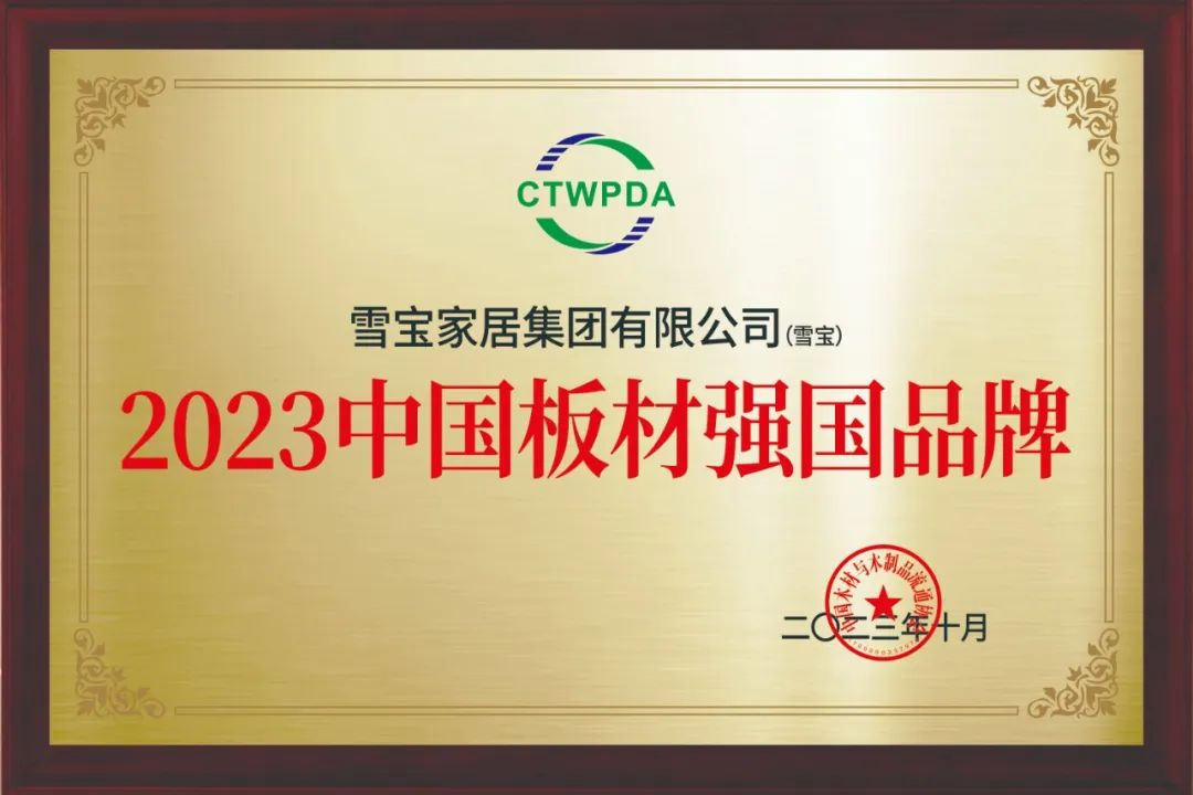 閃耀丨雪寶榮獲國字號“中國板材強(qiáng)國品牌”榮譽(yù)稱號