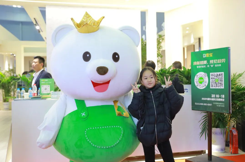 在展會現(xiàn)場,雪寶全新的品牌VI以及超級IP形象通過本屆長沙建博會首次與廣大消費者見面,IP人偶服裝扮互動和精致的IP手辦免費相贈,也引來眾多參展人士的打卡和領(lǐng)取,大家紛紛與雪寶超級IP形象合影留念并點贊。