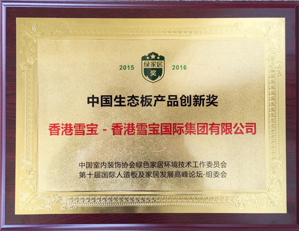 雪寶榮獲“2015—2016年度中國生態(tài)板產(chǎn)品創(chuàng)新獎”