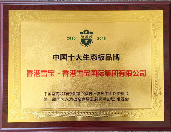 雪寶榮獲“2015—2016年度中國十大生態(tài)板品牌”