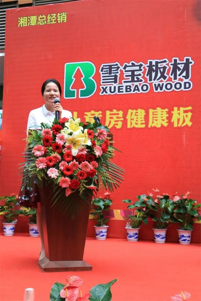 ▲雪寶板材湘潭旗艦店總經(jīng)理劉輝群女士為開業(yè)典禮致辭