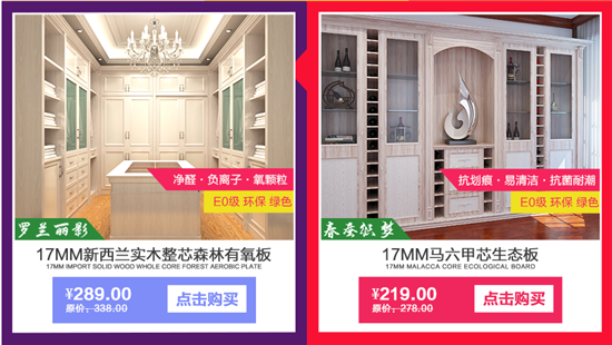 在家居建材板材類目中雪寶兒童房健康板對(duì)于網(wǎng)上營(yíng)銷頗有心得。超級(jí)讓利冰點(diǎn)破價(jià),最高300元抵現(xiàn)的優(yōu)惠活動(dòng),單張E0級(jí)的環(huán)保生態(tài)板材的優(yōu)惠最高達(dá)65元,還特別推出了0.1元特權(quán)禮包搶購(gòu)的活動(dòng)、1元秒殺的活動(dòng),避免了雙十一物流的高峰擁堵,使用戶體驗(yàn)大幅提升。