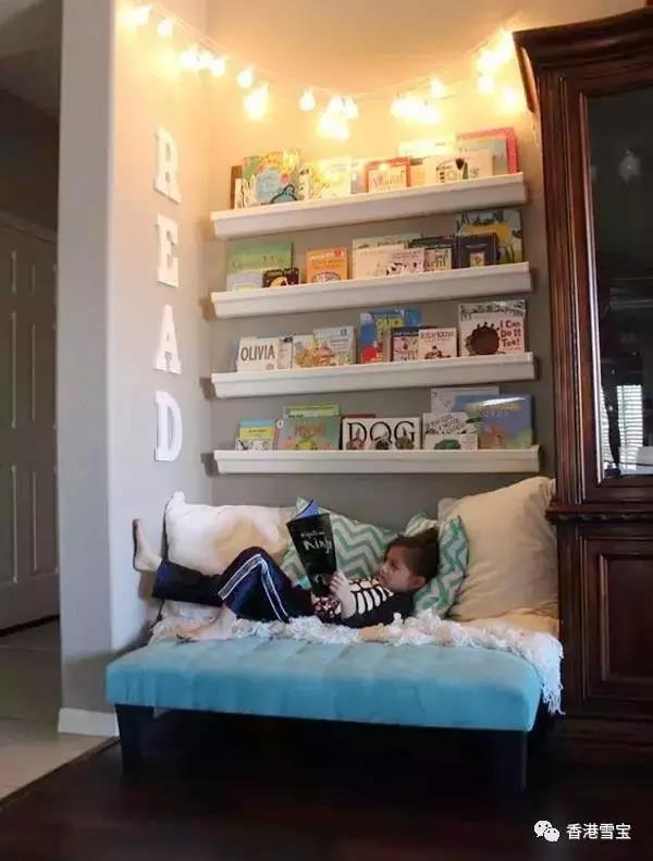 ▲利用房間的角落,做一個簡易的閱讀角,培養(yǎng)孩子從小就閱讀的習慣。腹有詩書氣自華,愛讀書的人不管是氣質(zhì)還是修養(yǎng)都不會太差!