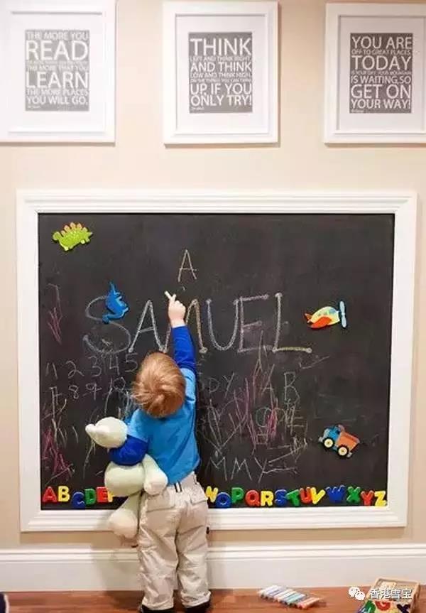 ▲孩童時期正是想象力最旺盛的時候,何不給孩子一個發(fā)揮的空間呢?一面黑板墻正好可以滿足孩子的需求和想象。