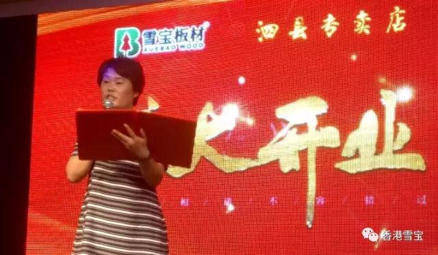 ▲雪寶板材安徽泗縣專賣店戚總為開業(yè)典禮致辭