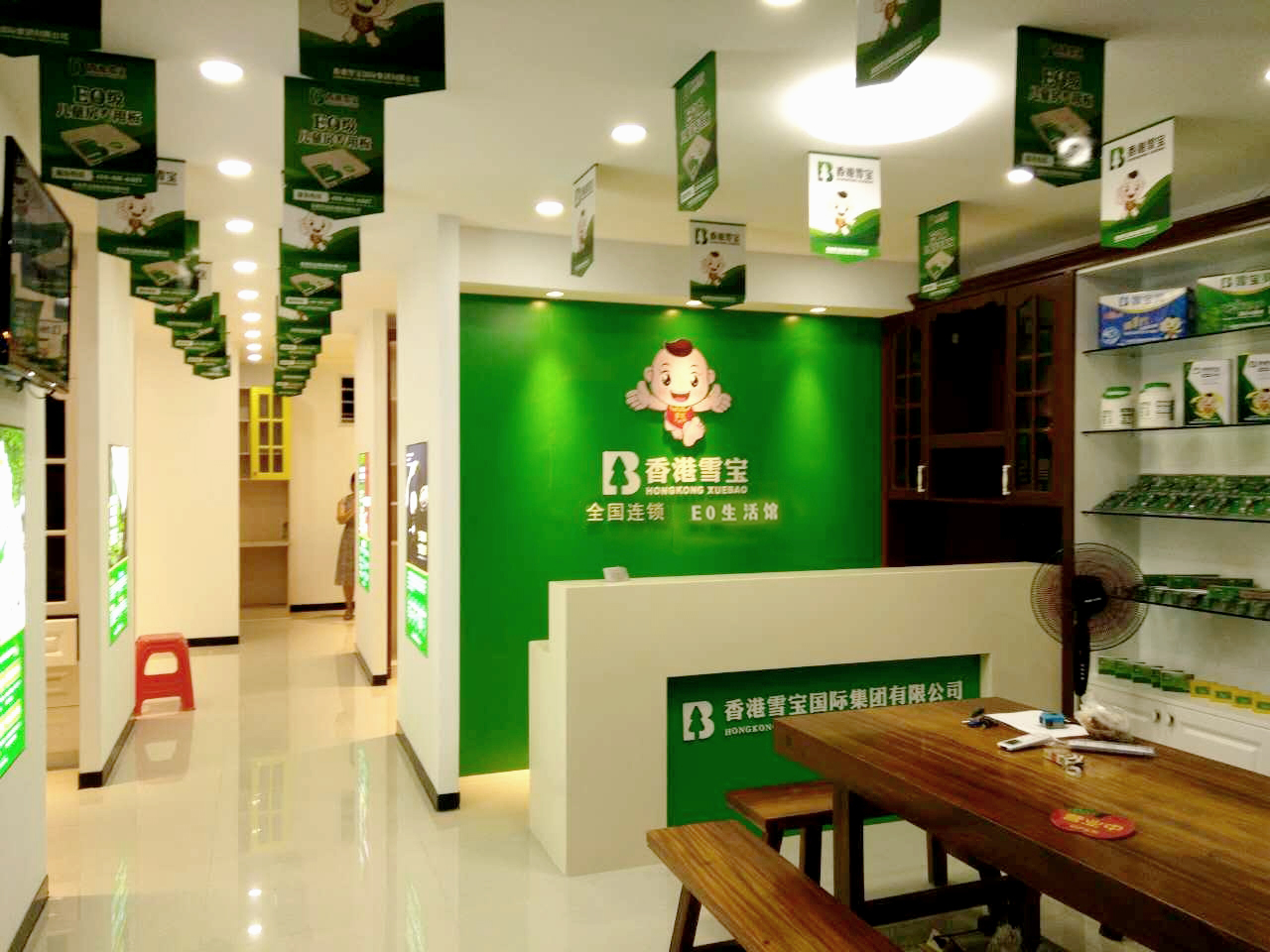 從進店看到雪寶小天使的背景墻到一窺各個展區(qū)的長走廊,明亮的燈光布置和隨處可見的品牌文化宣傳給人專業(yè)高效,品質優(yōu)秀的視覺印象。