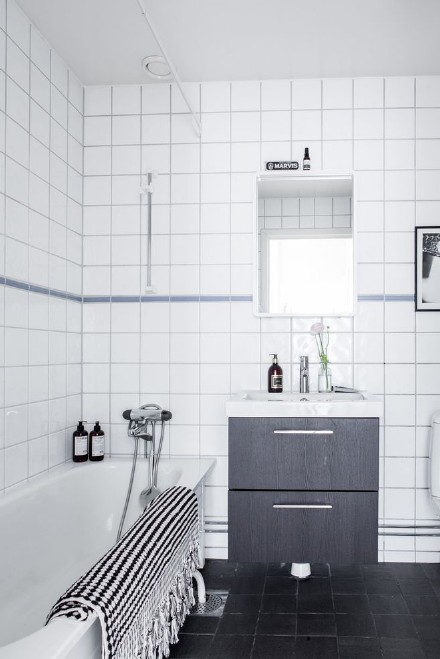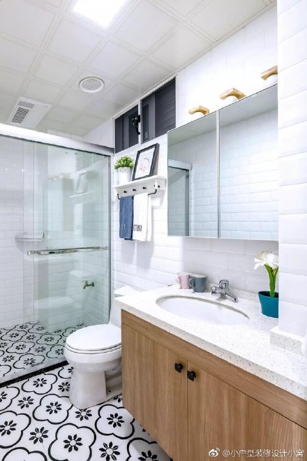 3、如果衛(wèi)生間空間比較緊湊,可以用不同的顏色磚搭配,以及不同大小和不同文理的磚搭配,這樣讓衛(wèi)生間的空間變得更為寬敞。