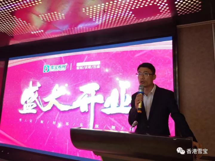 ▲香港雪寶板材祁東旗艦店彭總致開(kāi)業(yè)詞;