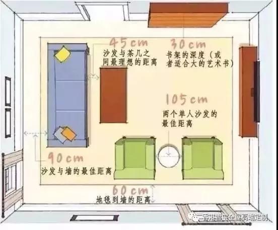 ④兩個單人沙發(fā)的最佳距離是105cm。