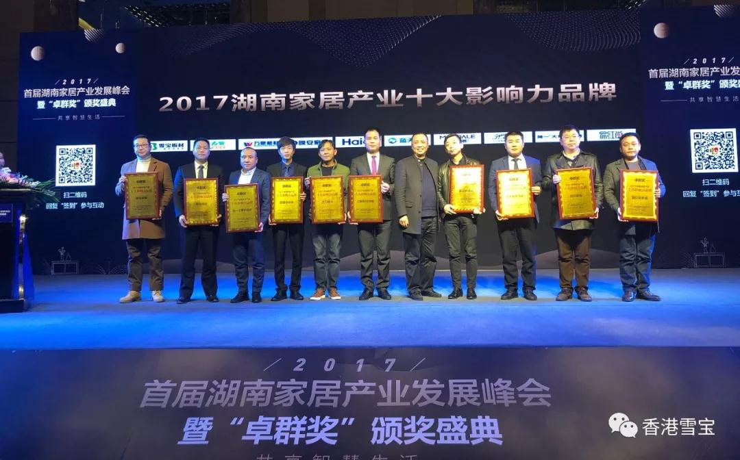 2018年1月11日,由湖南省建材流通行業(yè)商會、室內(nèi)裝飾協(xié)會、家具行業(yè)協(xié)會、家居協(xié)會主辦,由新浪家居聯(lián)合主辦,瀟湘晨報(bào)聯(lián)合協(xié)辦的2017湖南家居產(chǎn)業(yè)發(fā)展峰會暨【卓群獎】頒獎盛典圓滿落幕。“卓群獎”旨在為行業(yè)傳播正能量,為市場發(fā)展添動力。評審委員會根據(jù)候選品牌的線上表現(xiàn),再結(jié)合其自身實(shí)力、企業(yè)規(guī)模、品牌影響力和市場口碑等考核指標(biāo),經(jīng)過嚴(yán)格篩選,評定出優(yōu)秀獲獎品牌。