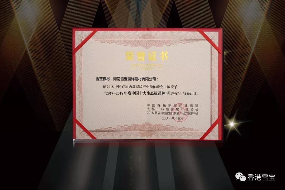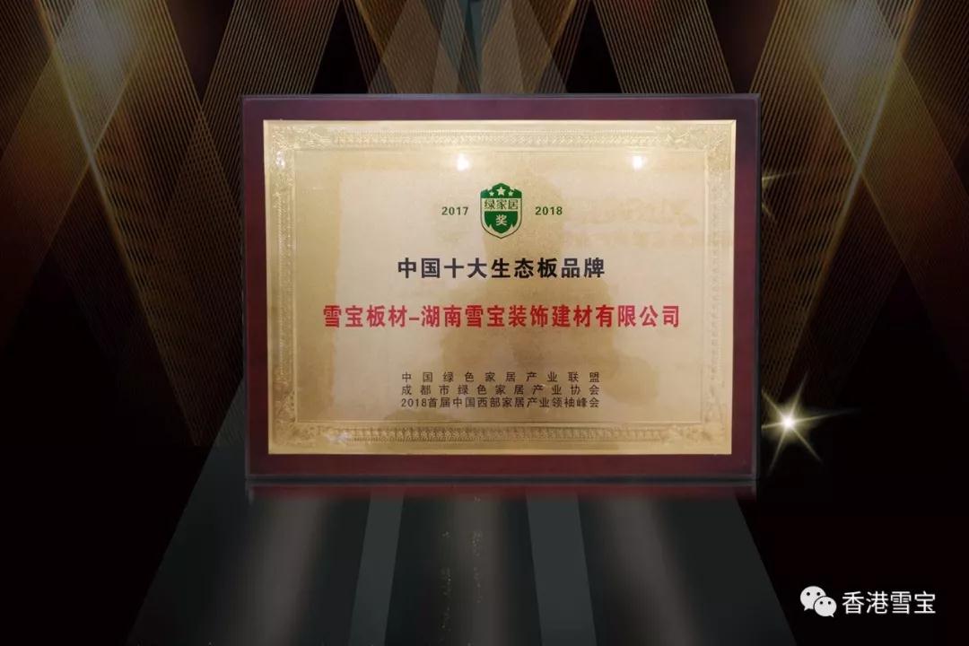 板材十大品牌雪寶板材榮膺2017-2018年度中國十大生態(tài)板品牌
